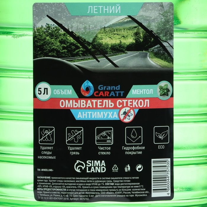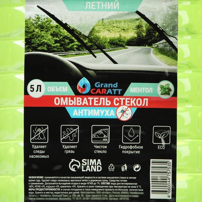 Летний омыватель стекол имеет прятный аромат ментола, эффективно удаляет следы мух с лобового стекла автомобиля, не оставляет следов на ЛКП автомобиля, не токсичен.