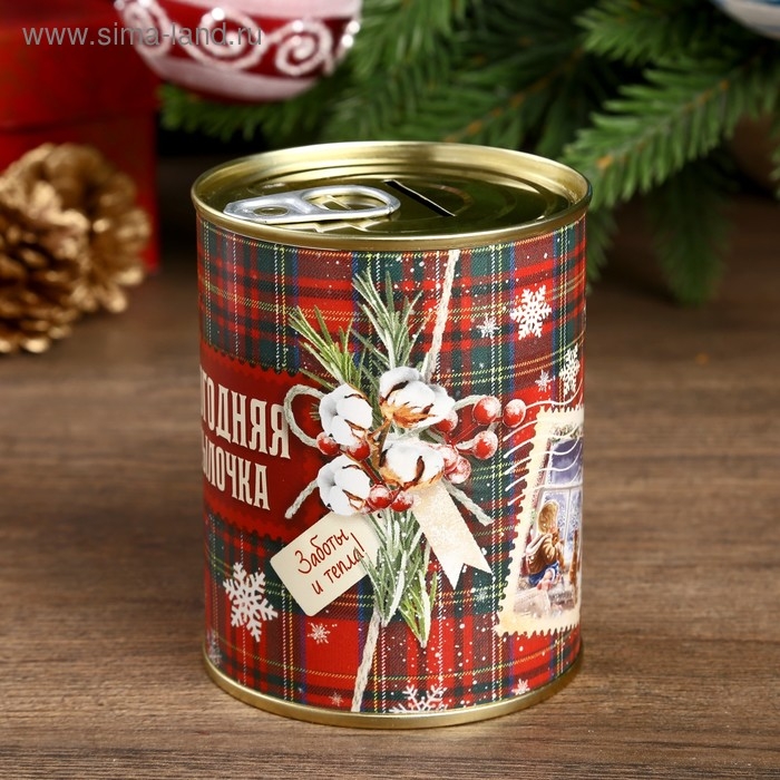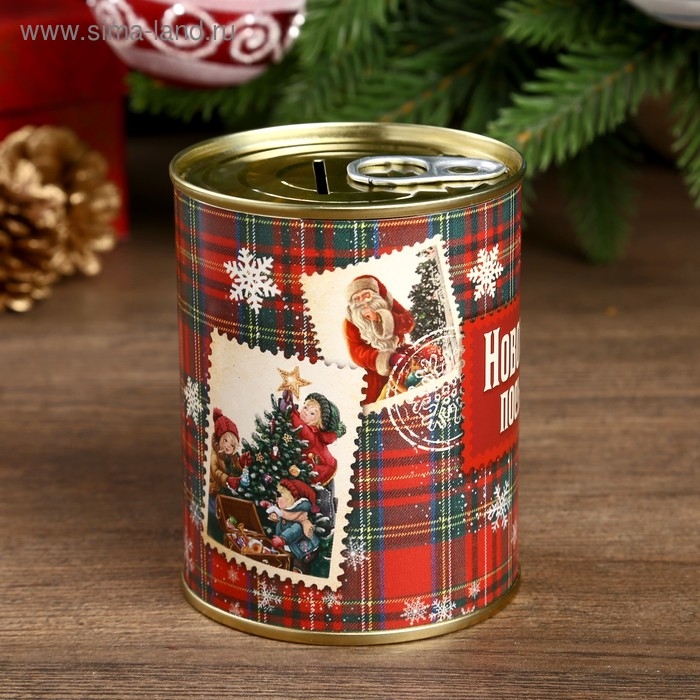 Копилка-банка металл "Новогодняя посылочка" 7,3х9,5 см