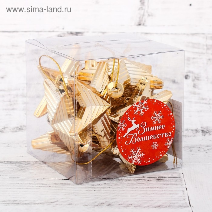 Украшение ёлочное "Рельефные звёзды" (набор 10 шт) 6 см, золото