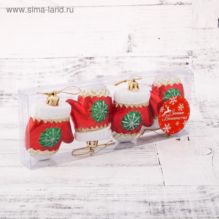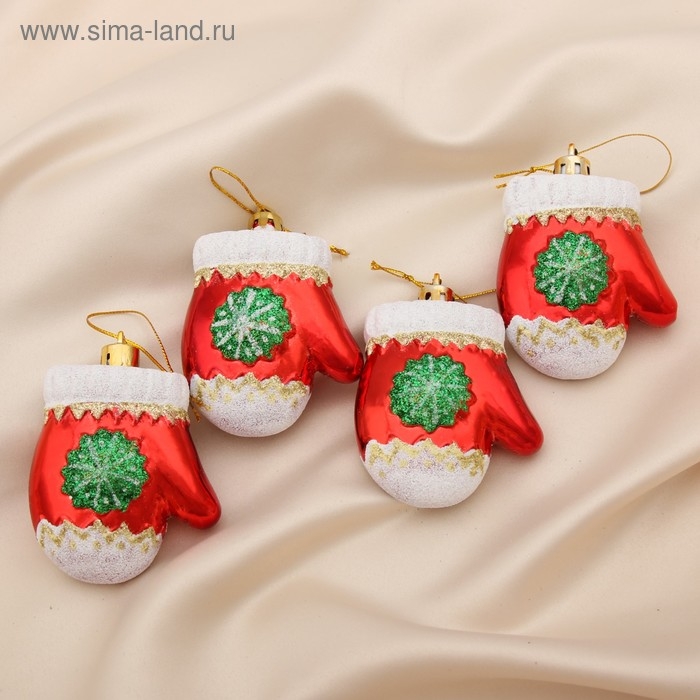 Украшение ёлочное "Варежка со снежинкой" (набор 4 шт) 6х5 см, красный