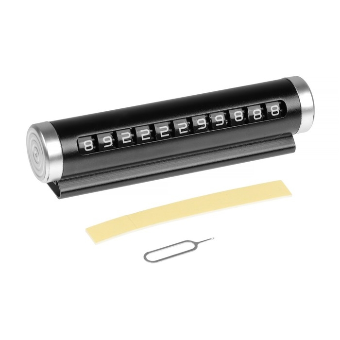 Парковочная табличка с номером телефона имеет подвижную конструкцию, что позволяет скрыть номер телефона легким движением одной руки. Набор имеет трафарет с цифрами от 0 до 9- это позволяет быстрого и легкого составить или изменить номера телефона, в случае если автомобилем пользуется не один водитель. В нижней части корпуса находится клейкая лента, которая позволяет надежно прикрепить табличку в нужном месте автомобиля. Современный дизайн таблички не будет выделяться из интерьера салона вашего автомобиля. Парковочная табличка залог спокойствия водителя.