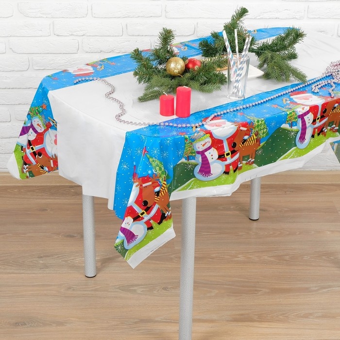 Новогодняя скатерть одноразовая «Счастливого Нового Года», Дед Мороз, 182х137 см