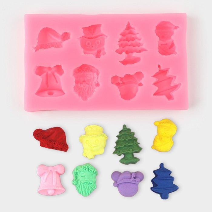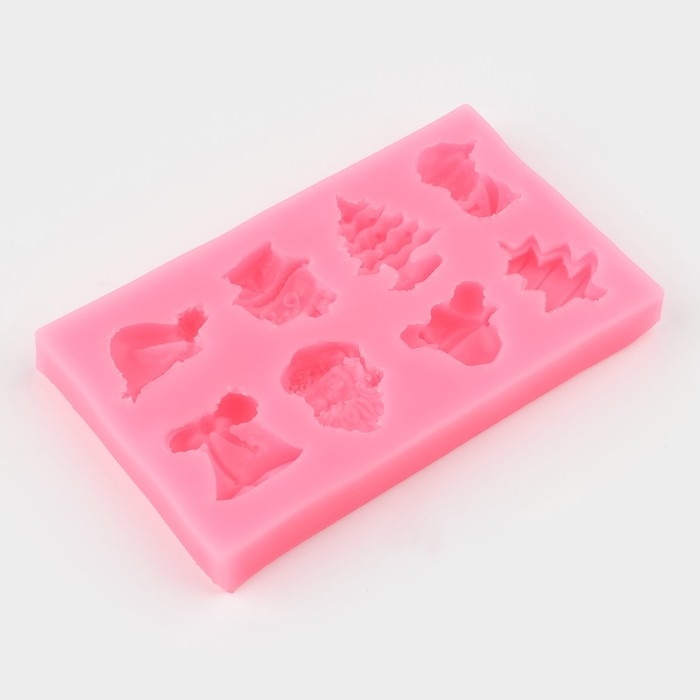 Молд новогодний «Снежные», силикон, 11,8×7 см, цвет розовый
