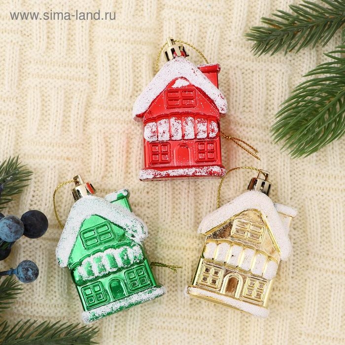 Украшение ёлочное "Домик в снегу" (набор 3 шт) 5,5х3,5 см, микс