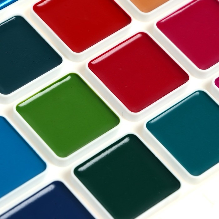 Краски акварельные, 50 цветов в кюветах, в коробке, с кистью