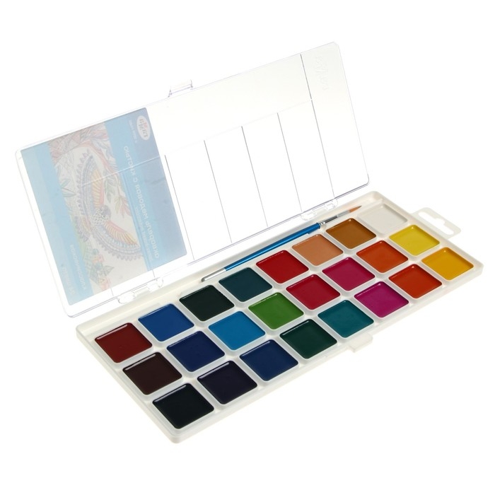 Акварель художественная в кюветах, 24 цвета х 2.5 мл, ЗХК "Санкт-Петербург", пластиковая палитра, 1942017
