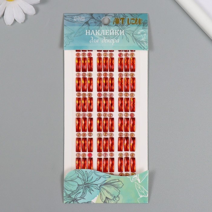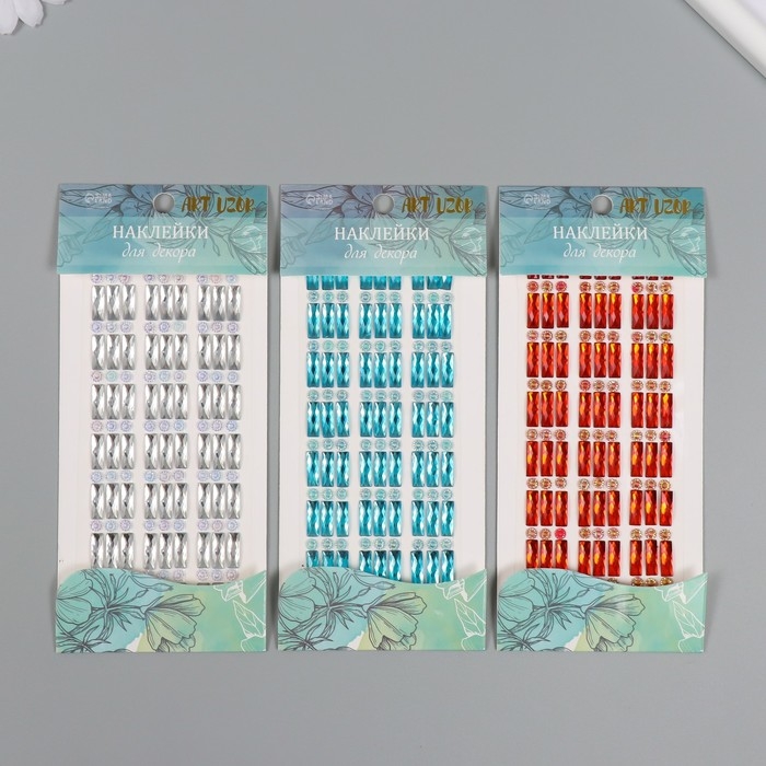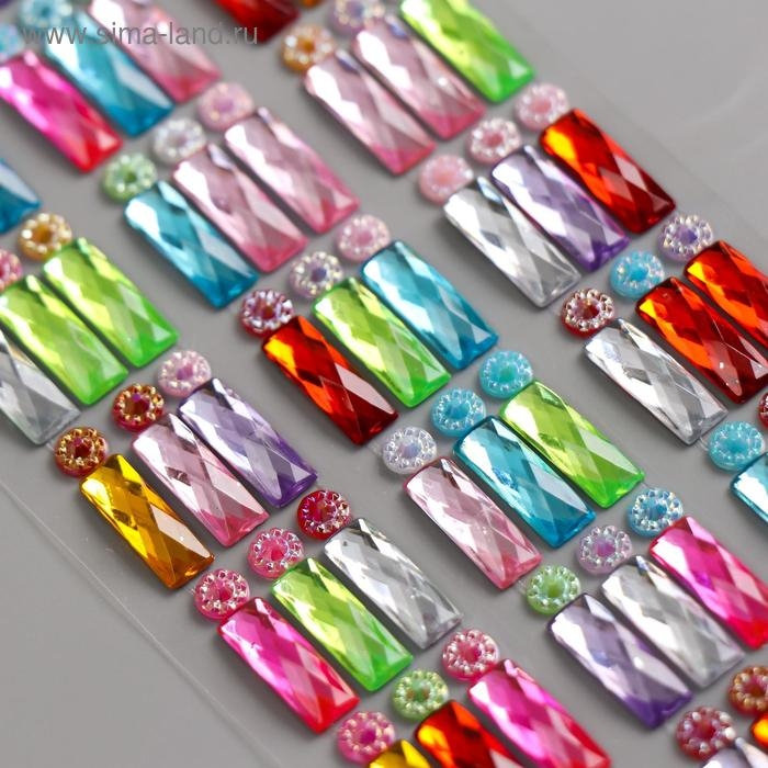 Наклейка пластик стразы "Кристаллы прямоугольные" МИКС 21,5х7 см