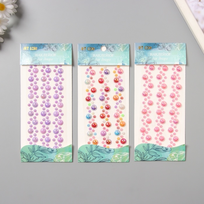 Наклейка пластик стразы "Изгибы - жемчужинки" 21,5х7 см