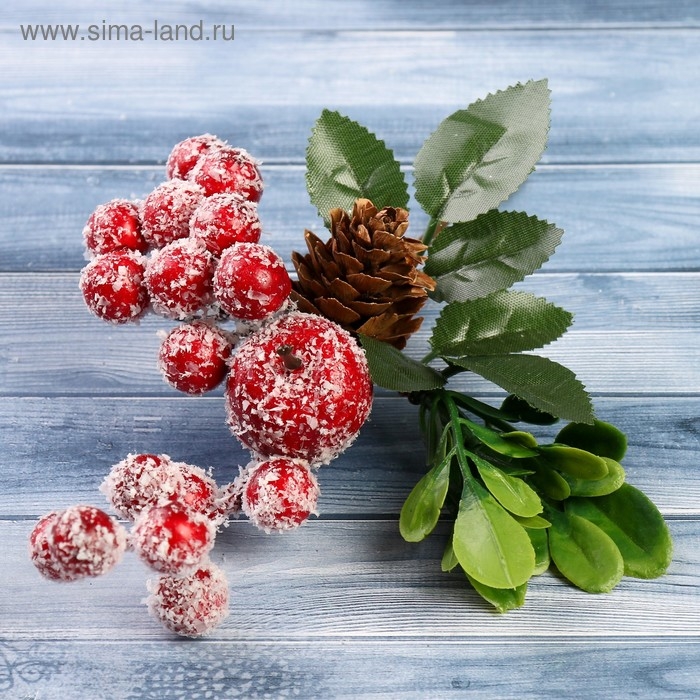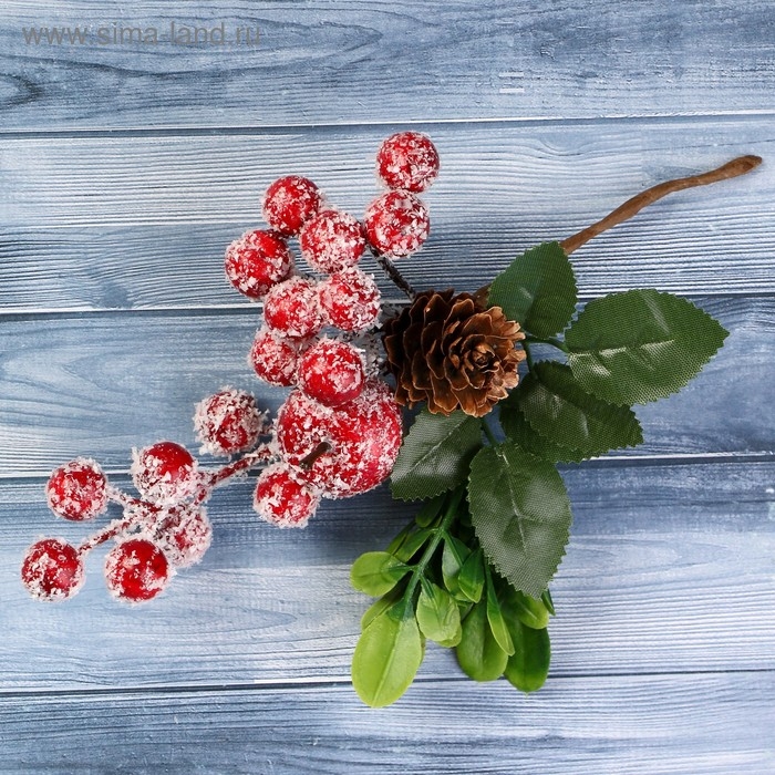 Декор "Зимние грезы" ягоды иней шишка листья 18 см