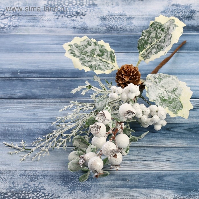 Декор "Зимние грезы" ягодки белые листья шишка, 26 см