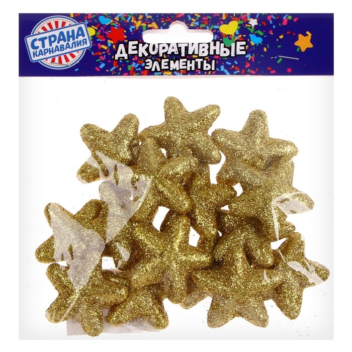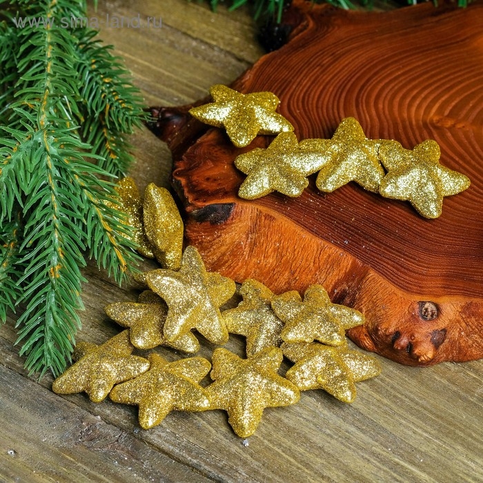 Фигурка для поделок и декора "Звезда", набор 15 шт., размер 1 шт. 3,5×3,5×2 см, цвет золото