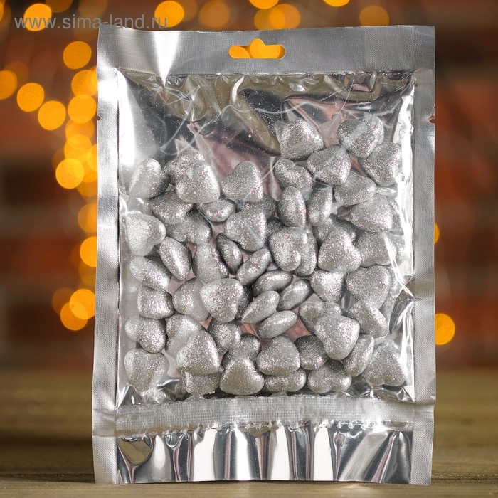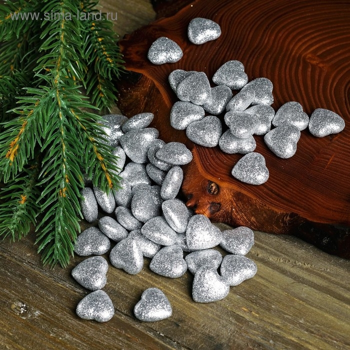 Фигурка для поделок и декора "Сердце", набор 50 шт., размер 1 шт. 1,5×1,5×0,5 см, цвет серебро