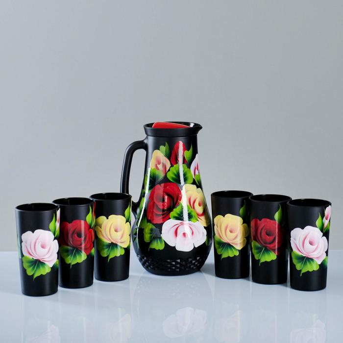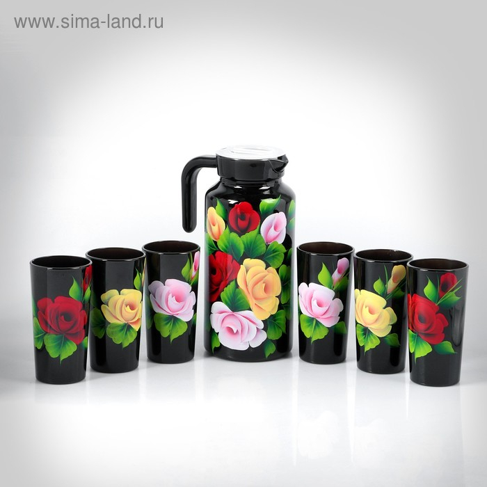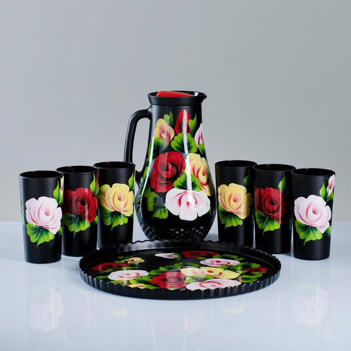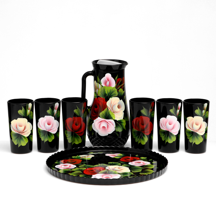 Набор для сока с подносом "Жостово" художественная роспись, 6 стаканов 1250/200 мл