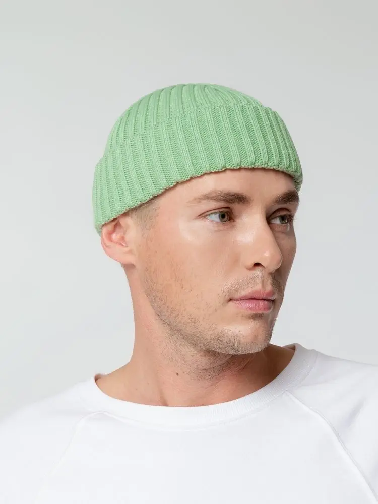 Укороченная шапка бини с отворотом станет ярким акцентом в гардеробе и поможет создать запоминающийся образ.
