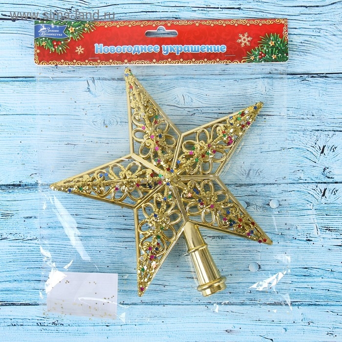 Наконечник "Звезда" ажурная посыпка, 20х20,5 см, золото