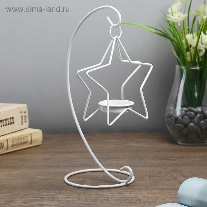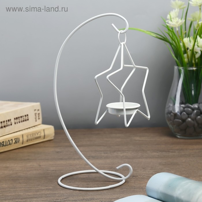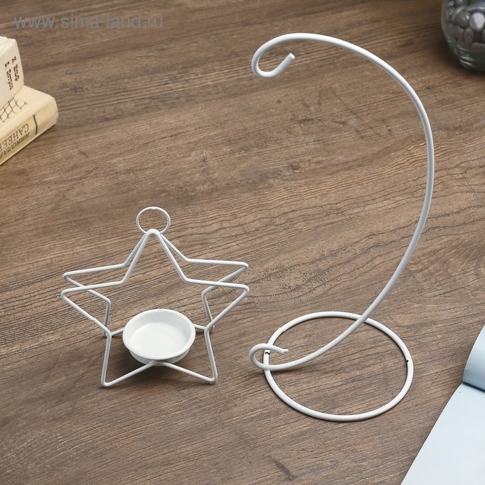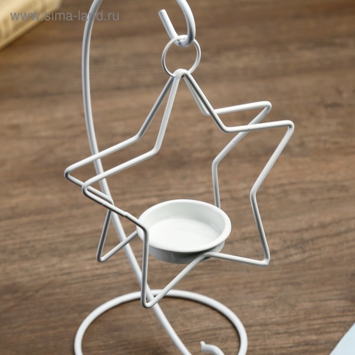 Подсвечник металл 1 свеча "Звезда на дуге" белый 20,5х10х10 см