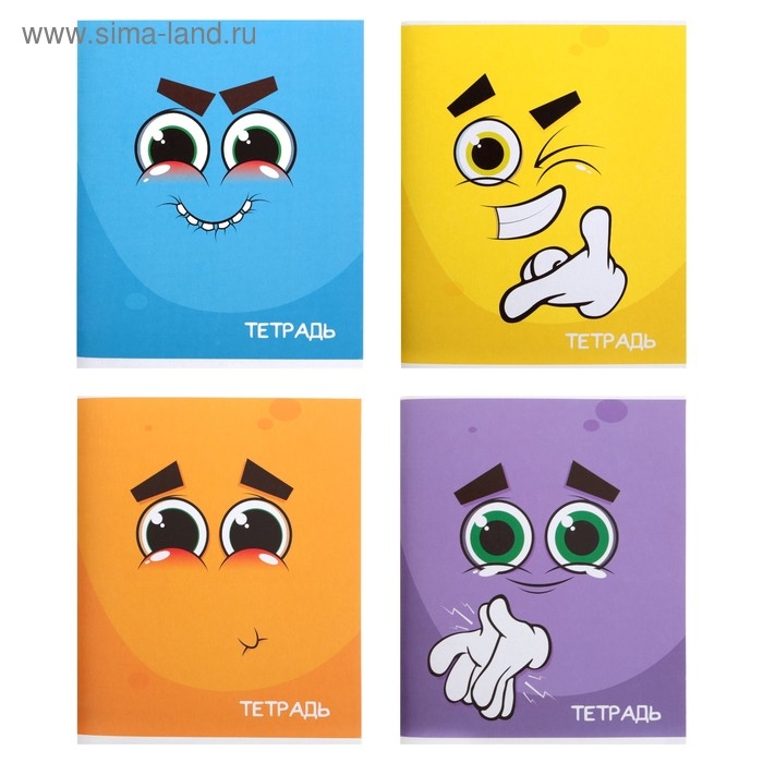 Тетрадь 96 листов в клетку Calligrata "Смайлики", обложка мелованный картон, блок офсет, МИКС