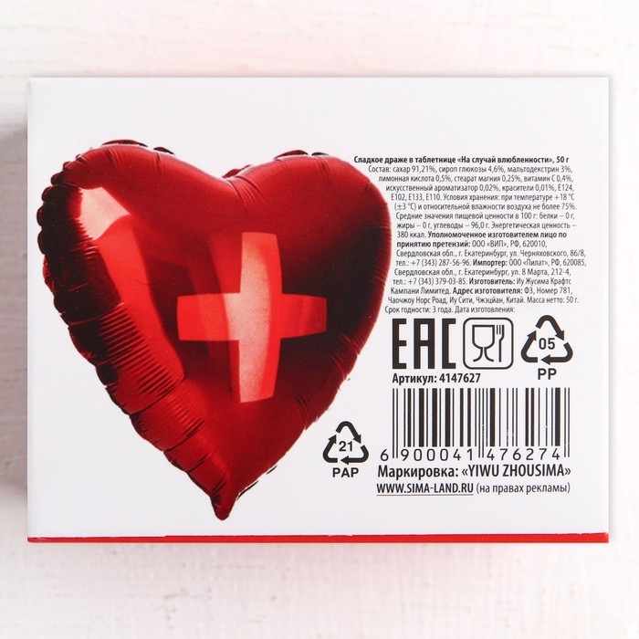 Драже Конфеты - таблетки «На случай влюблённости»: 50 г