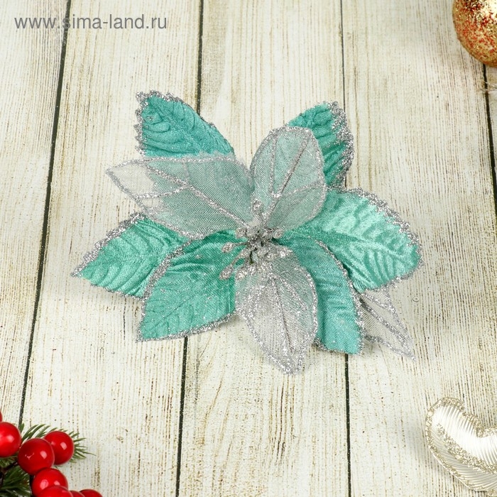 Декор "Зимний цветок" 15,5х12 см, бирюза