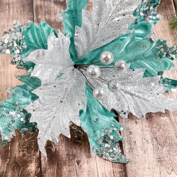 Декор "Зимний цветок" жемчужины, 23х19 см, бирюза