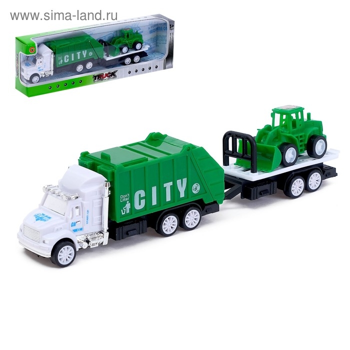 Грузовик инерционный «Городские службы» с трактором, МИКС