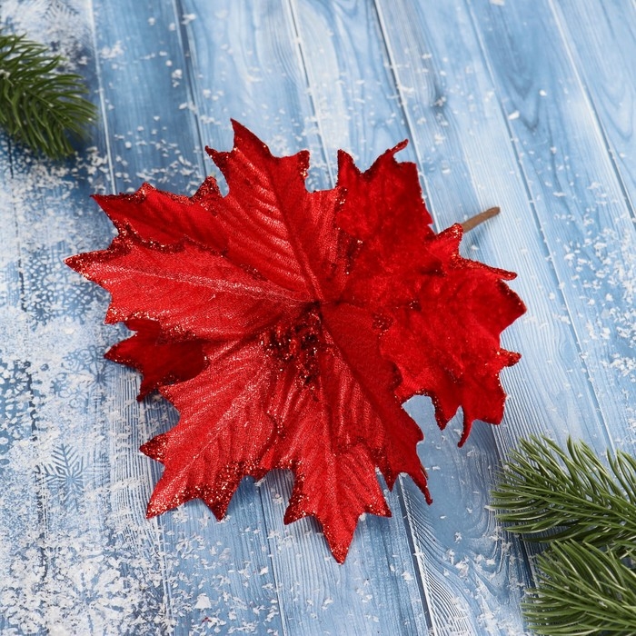 Декор "Зимний цветок" резной, 17х12 см, красный