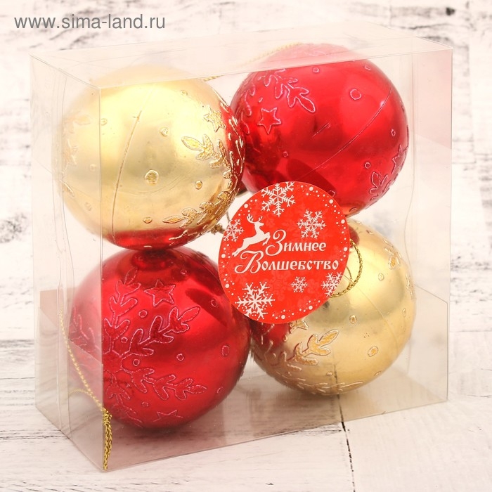 Набор шаров пластик d-6 см, 4 шт "Снежинка объёмная" красно-золотой