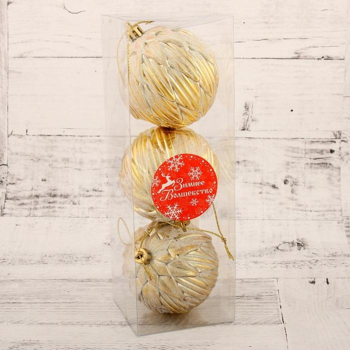 Набор шаров пластик d-7 см, 3 шт "Иней" золото