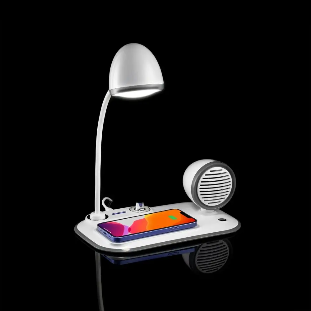 Лампа с колонкой и беспроводной зарядкой Flashback, белая