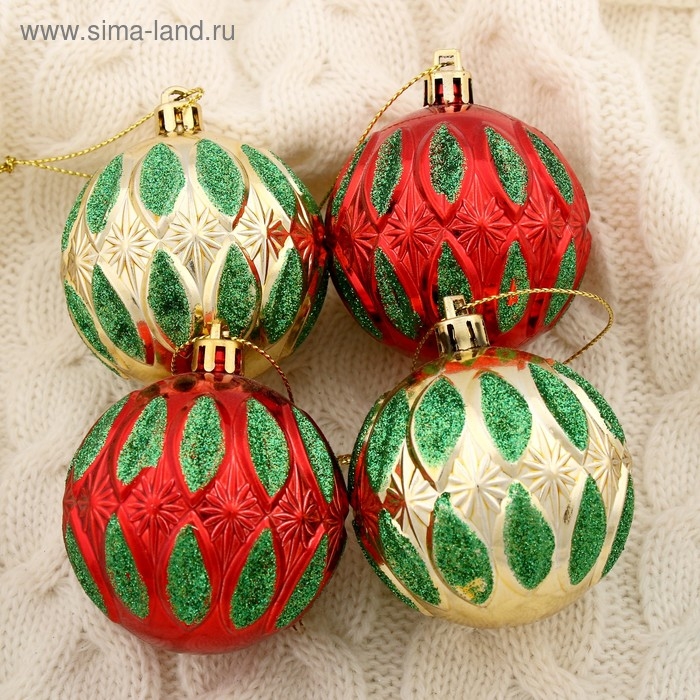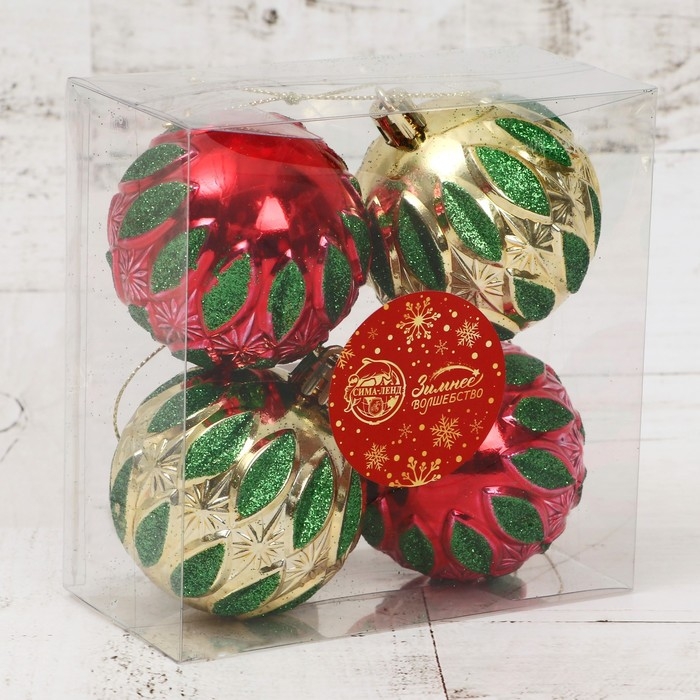 Набор шаров пластик d-6 см, 4 шт "Гранат" красный золото