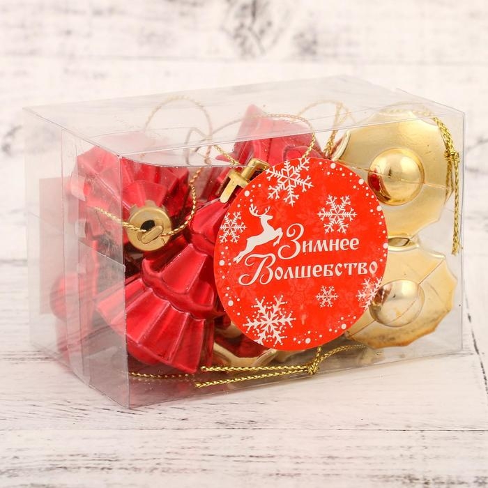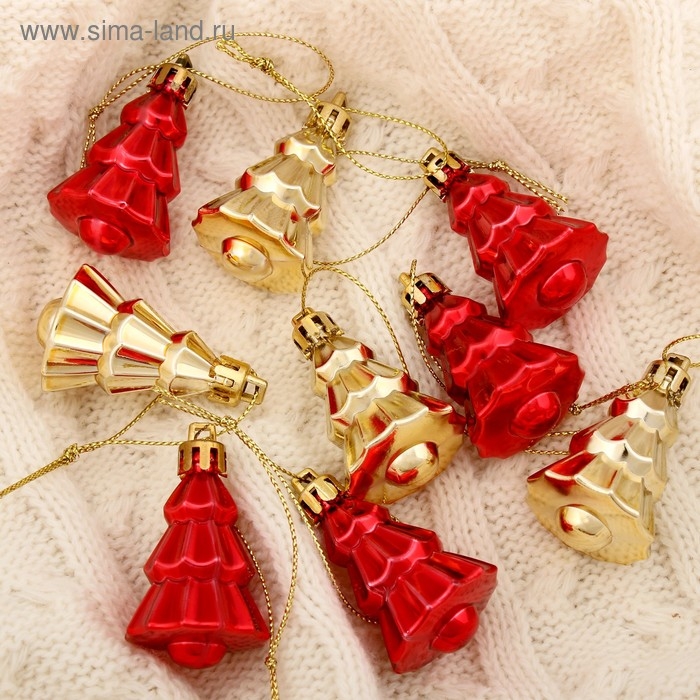 Украшение ёлочное "Ёлочка" (набор 9 шт) 4х2,5 см, красный золото