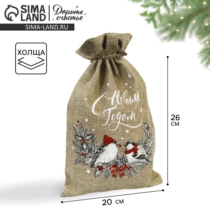 Мешок с термонаклейкой «Снегирь», 13 х 18 см +/- 1.5 см, Новый год