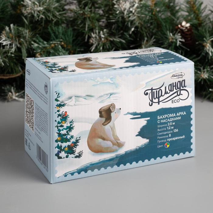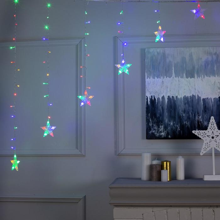 Гирлянда «Бахрома-арка» 2.5 × 1.2 м с насадками «Звёзды», IP20, прозрачная нить, 136 LED, свечение мульти, 8 режимов, 220 В