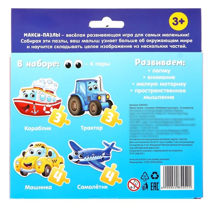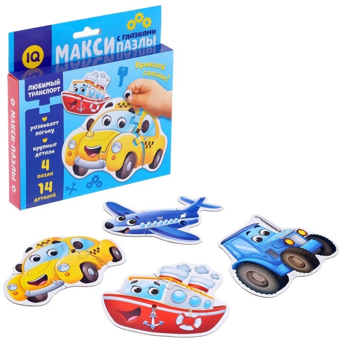 Макси-пазлы с глазками «Любимый транспорт», 4 пазла, 14 крупных деталей