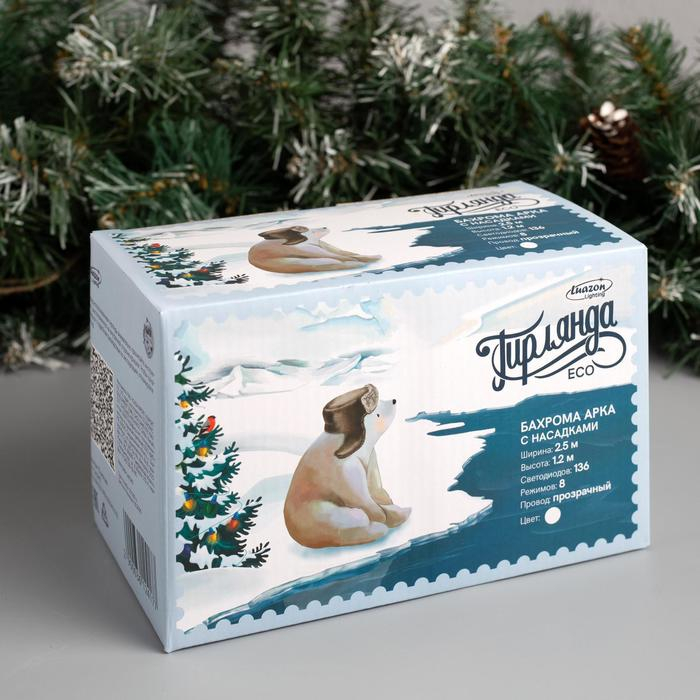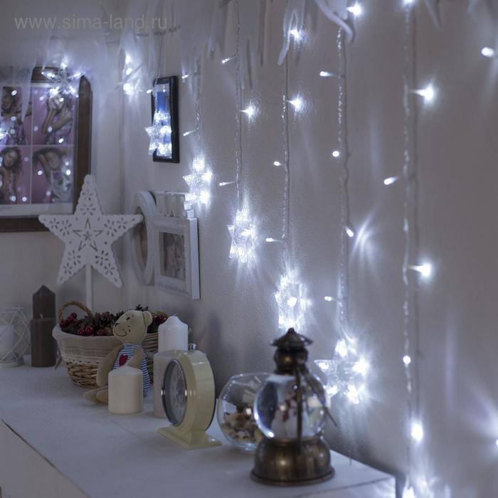 Гирлянда «Бахрома-арка» 2.5 × 1.2 м с насадками «Звёзды», IP20, прозрачная нить, 136 LED, свечение белое, 8 режимов, 220 В