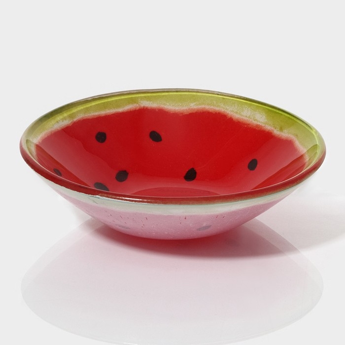 Салатник стеклянный Доляна «Арбуз», 150 мл, 12×2,5 см, цвет красный