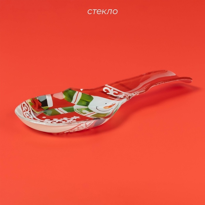 Подставка стеклянная под ложку Доляна «Снеговик», 24×10 см