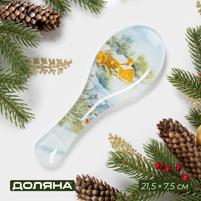 Подставка стеклянная под ложку Доляна «Новый Год», 21,5×7,5×1,5 см