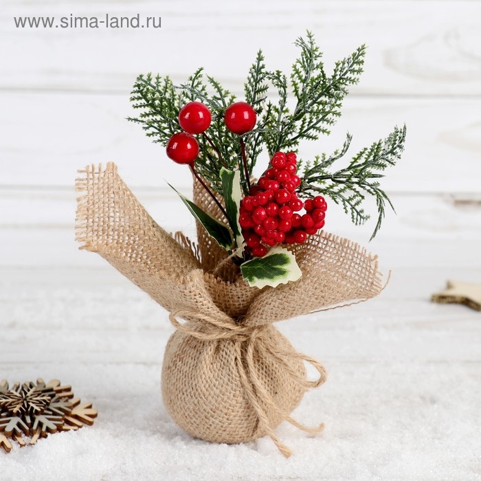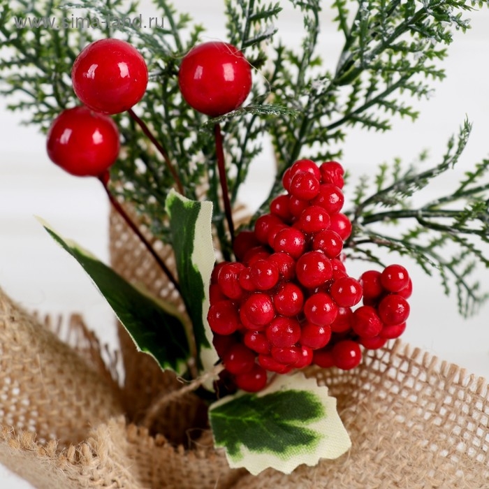 Декор "Зимнее очарование" ягодки листья в мешочке, 17 см
