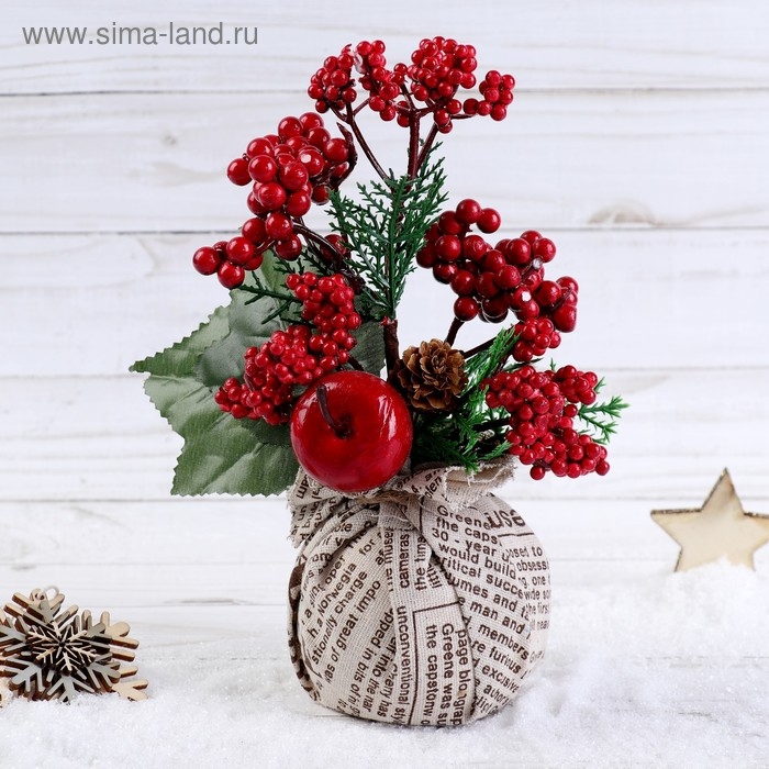 Декор "Зимнее очарование" ягоды шишка в мешочке, 17 см
