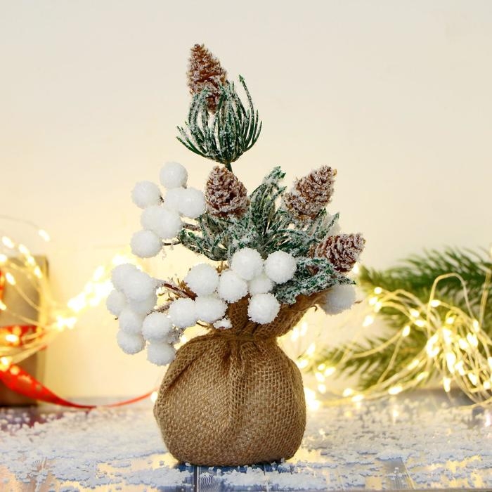 Декор "Зимнее очарование" белые ягоды шишки в мешочке, 22 см