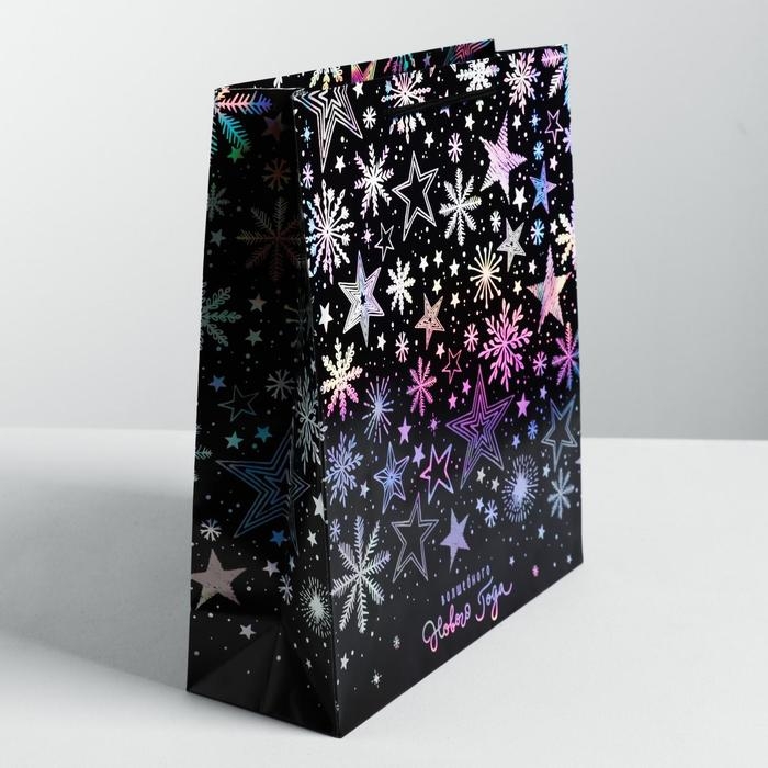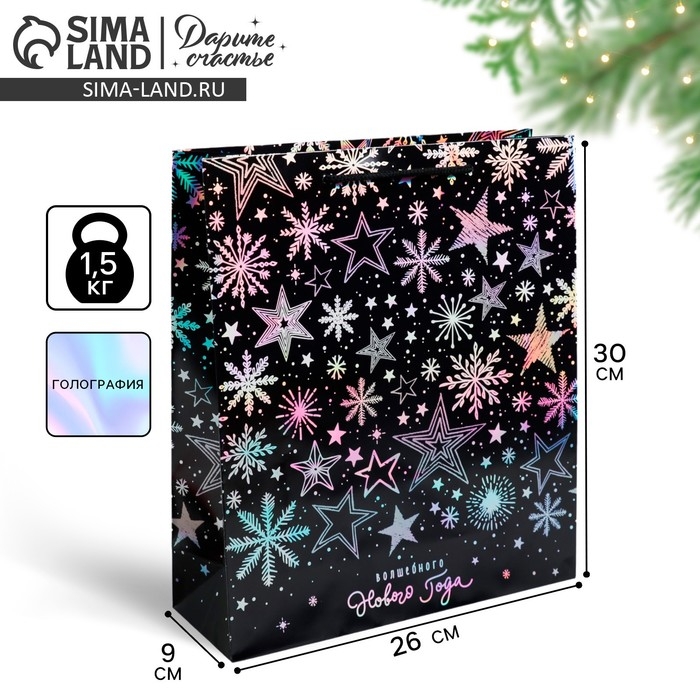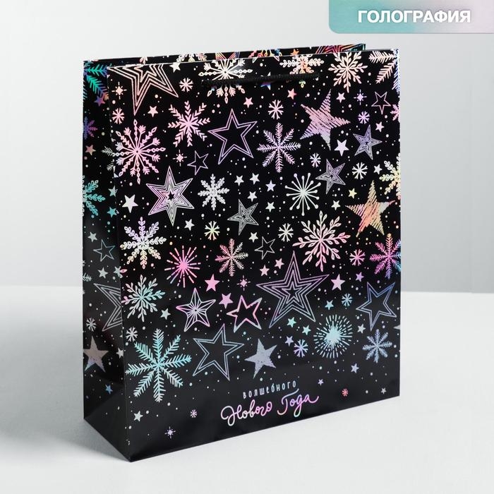 Пакет голографический вертикальный «Волшебного Нового года», M 26 x 30 х 9 см , Новый год