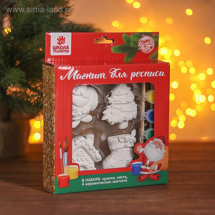 Набор новогодних магнитов под раскраску 4 шт. «Волшебный» краски 6 цв. по 2 мл