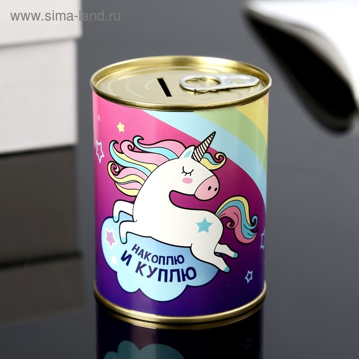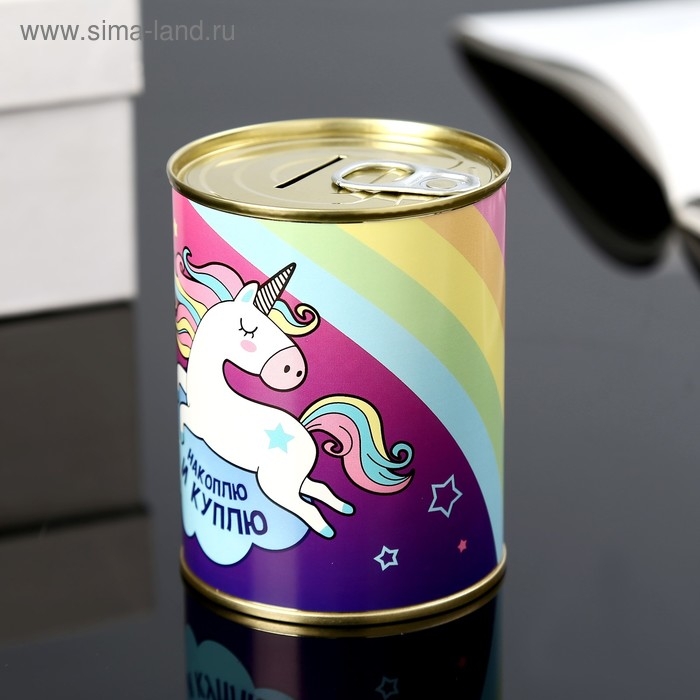 Копилка-банка металл "Коплю на единорога " 7,3х9,5 см