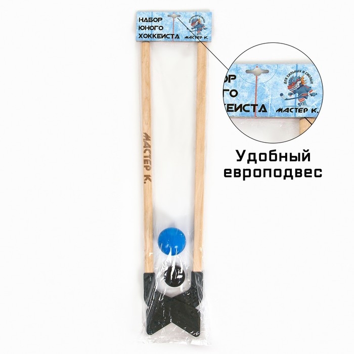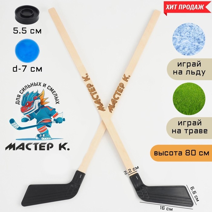 Клюшки для игры в хоккей "Мастер К", набор: 2 клюшки 80 см, шайба 5.5 х 1.5 см, мяч d-7 см