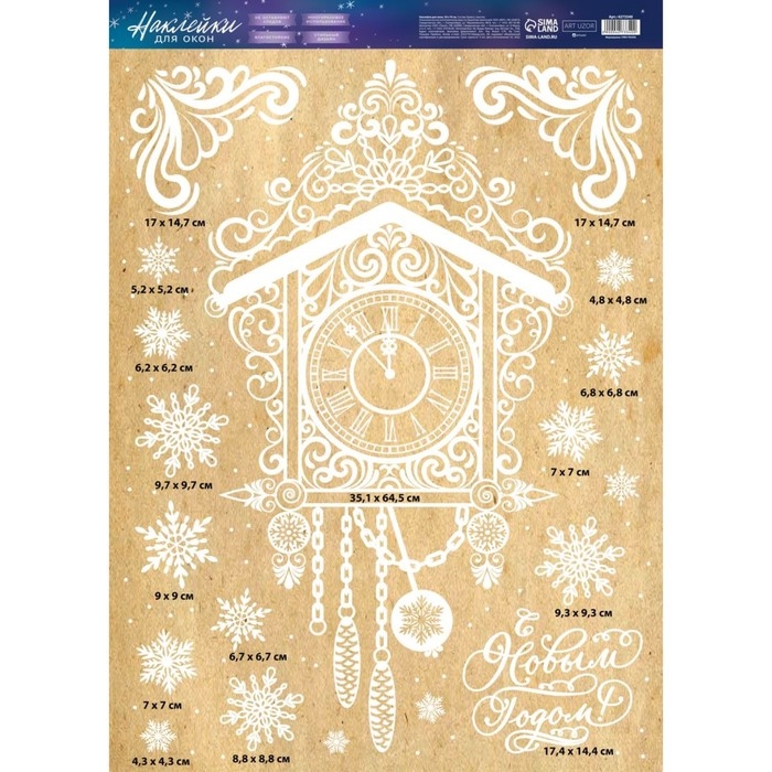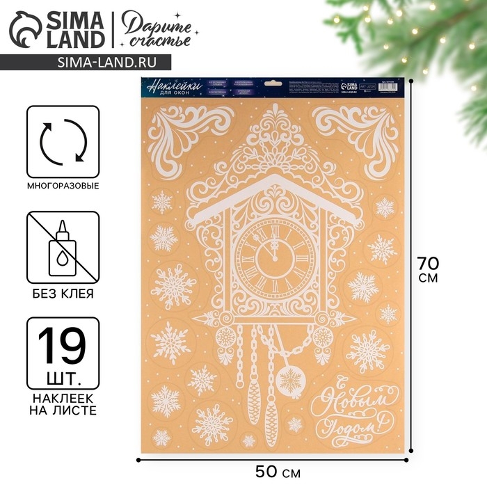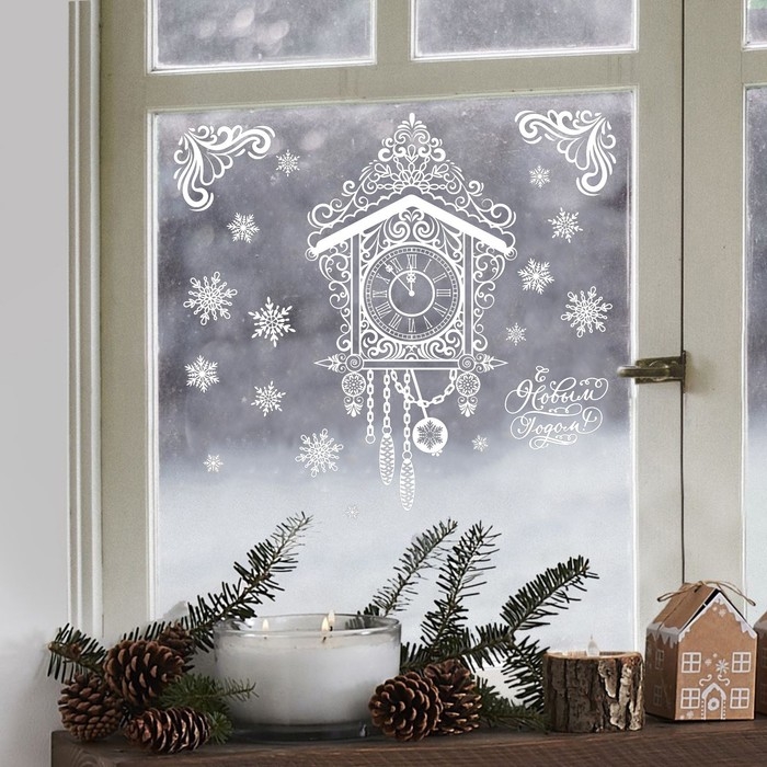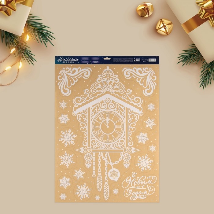 Наклейки новогодние на окна «Новогодние часы», многоразовые, 50 х 70 см, Новый год