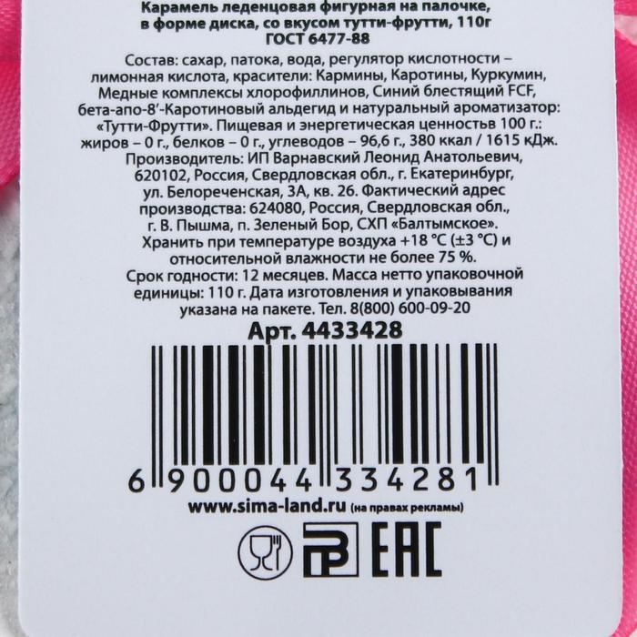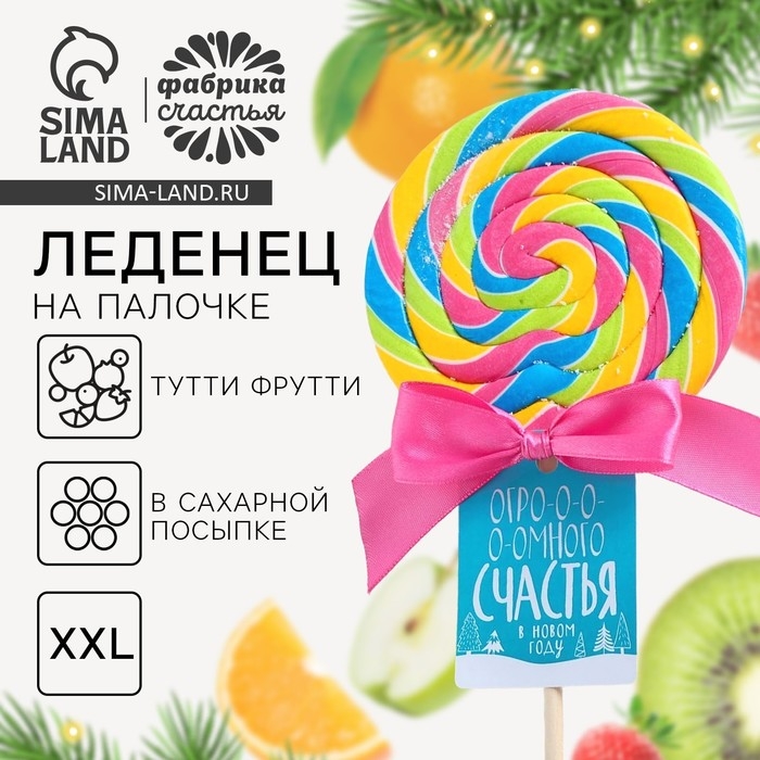 Леденец XXL на палочке «Счастья»: со вкусом тутти-фрутти, 110 г.