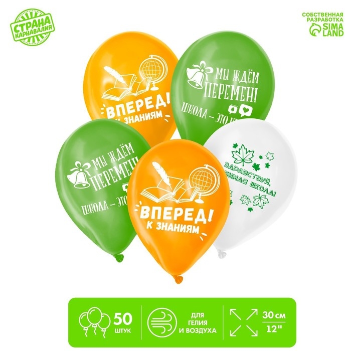 Воздушный шар латексный 12" "Вперёд к знаниям", 50 шт.