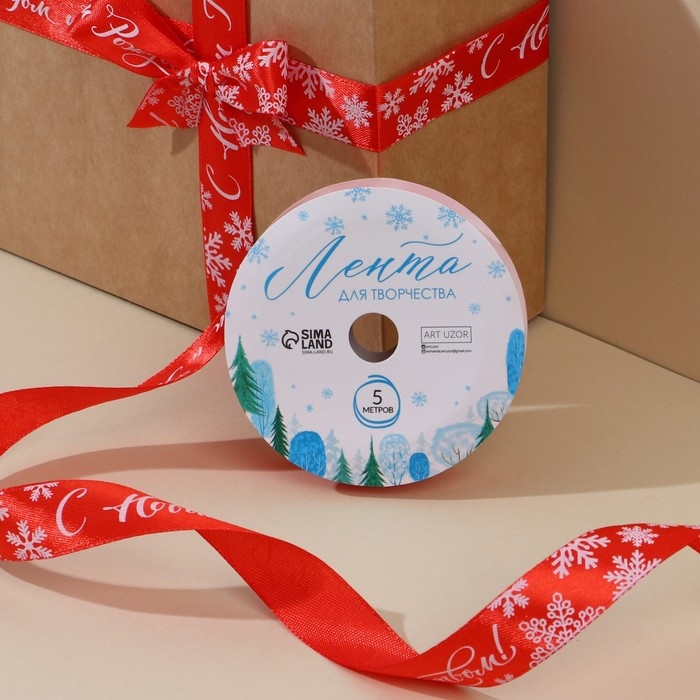 Лента декоративная атласная «С Новым годом и Рождеством!», 2 см × 5 м