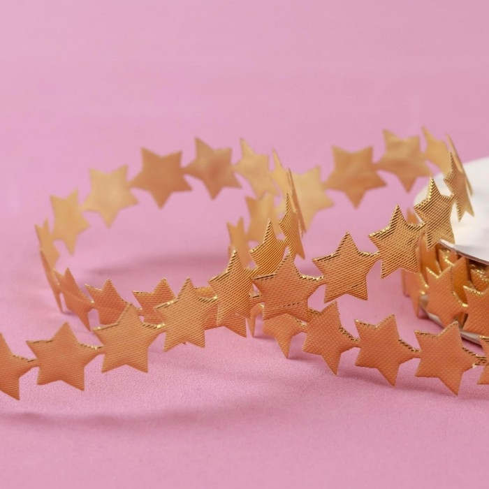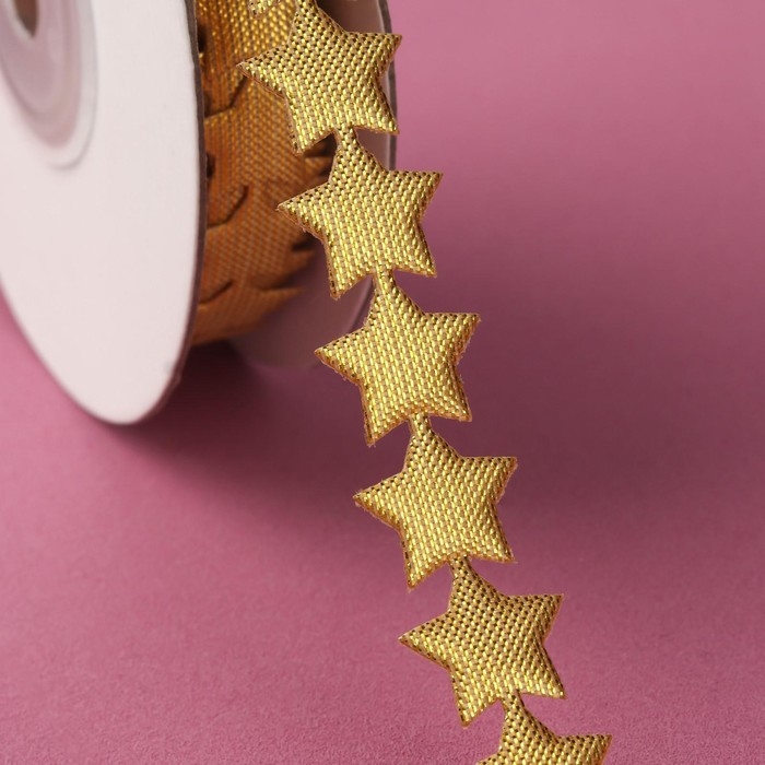 Новый год! Лента фигурная «Звёзды», 15 мм, 9 ± 0,5 м, цвет золотой